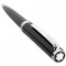 Penna sfera Montblanc Pix con corpo e cappuccio in pregiata resina col nero finiture in platino. Sulla parte superiore del cappuccio l'iconoco emblema Montblanc bianco. Apertura a rotazione.